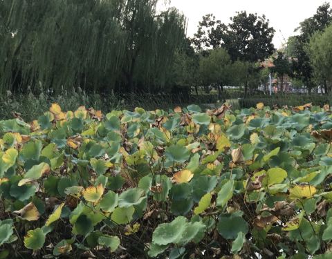没想到面积还是挺大的,正好是午后太阳有点儿大,没什么人的,初秋的公园里的荷花开始凋零,还是挺有看头的