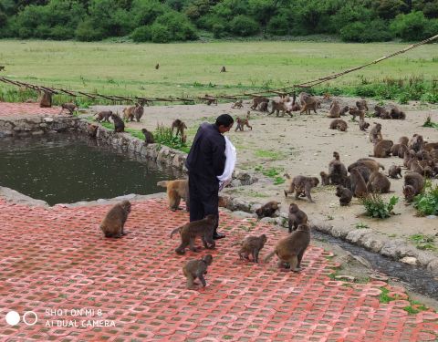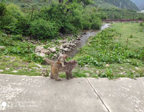应该是拉萨到林芝途中的一个新开发的景点,还没多少游人前往。赶时间的朋友不建议前往,时间充裕的可以去游览下。我们去时只有我们一辆车上连司机在内的四个人。猕猴们一点都不怕人,会主动的围上来,听司机师傅说,猕猴们围过来是要吃的来了,这时可以把准备好的花生米,饼干,水果之类的食物投喂给猕猴,还是挺有趣的,适合带小孩去玩。只不过这些都是野生猕猴,具有攻击性,所以投喂时一定千万要小心,不要太靠近猕猴,也不要故意耍弄猕猴,尤其是带小孩去玩的家长,一定要照看好自己的小孩。