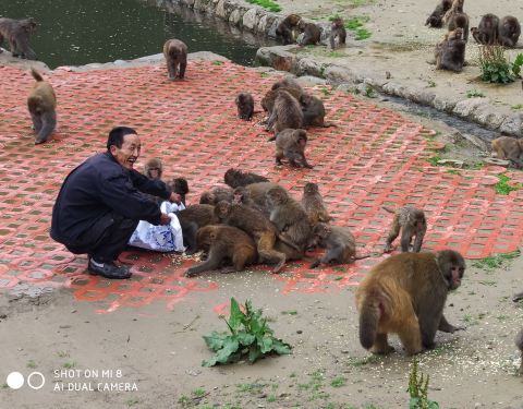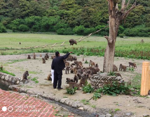 在林芝市工布江达县林则村,坐落着西藏唯一一个野生猕猴园——“林则野生猕猴乐园”。我们的车子刚一停下来,近200只猴子便从山头赶来,不避生人下山觅食,聚集在了我们周围,时而攀枝跳跃,时而玩耍打闹。我们从包里掏出花生、水果等食物撒给猴子们,看着猴子们你争我抢。我们置身在猕猴群中,感受着人与自然的和谐。猕猴善于攀援跳跃,会游泳和模仿人的动作,有喜怒哀乐的表现,它们和游客友好相处,并不怕生,看了倍生可爱。