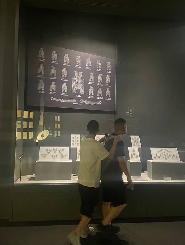 博物馆陈列的遗址沙盘中明显看见城郭院墙,当中体现的奴隶阶级的出现令我有些迷乱。这个遗址应该是夏以后的。