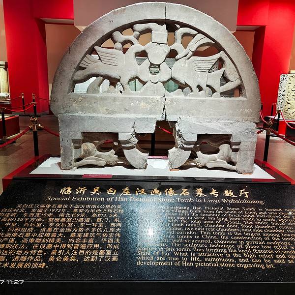 临沂博物馆很扎实的馆。一楼汉画像石美轮美奂。特别墓葬雕刻图案有东王公西王母等神话人物、生前日常工作生活(豪车、宴席、公务),陪葬的有贵重物品。其实我们现在也一样,顶层谁不想永远年轻?二楼临沂史,展品丰富,四个...很扎实的馆。一楼汉画像石美轮美奂。特别墓葬雕刻图案有东王公西王母等神话人物、生前日常工作生活(豪车、宴席、公务),陪葬的有贵重物品。其实我们现在也一样,顶层谁不想永远年轻?二楼临沂史,展品丰富,四个阶段层次分明,细石器时代第一次听说!沂河、沭河、东夷文化,强! 展开
