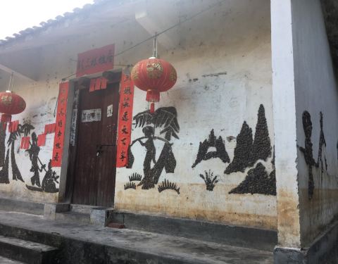 所谓故居,不过是当地人为建造的一个土房子,外墙用小石子装饰了当地人劳作的一些图案