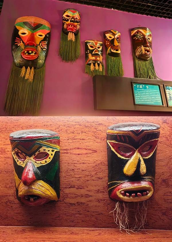 融水苗族的每年正月十七,都要恭请“芒篙”,共跳芦笙踩堂舞。他们相信借助面具,可以获取山神的力量。