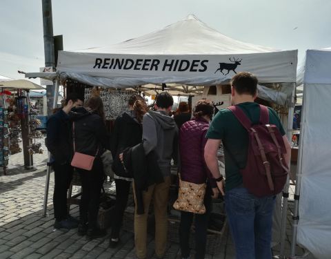 露天自由市场里一个个小摊位贩卖着花草、家常食物、一般用品、手工艺品等,充满芬兰的生活风情