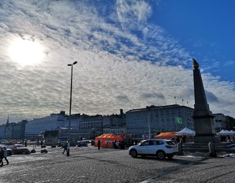 赫尔辛基露天市集广场是在码头旁边。附近非常的热闹,公车都有到达, 交通非常的方便,每天都有很多商贩聚集在这里,有很多小摊贩,卖一些新鲜的水果,还有露天的餐厅提供简单的餐饮,还有,芬兰生产的特产比如说狐皮貂皮驯鹿皮,各种皮毛制作的大衣帽子围巾等等。芬兰的物价格非常贵,所以这里的餐饮相对之下就显得比较便宜。这里有很多海鸥,飞得非常的低, 所以要当心,小心被打到或者是鸟的大便从天而降。