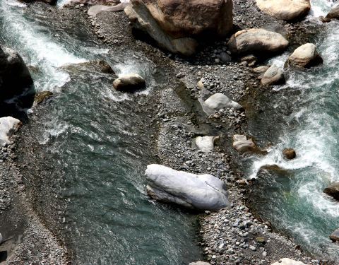 出口直接是一段几十米高的挂壁步行道,下方的河流,公路,河中间的大理石横七竖八,断桥枯木,直接呈...