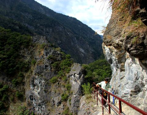 在绿水步道旁还有另外一条步道,但是看上去原始很多而且要入山证才能进去。相对而言绿水步道好有很多,不是很费劲。途中有小吊桥,小山洞。在山洞里要小心,地是湿湿的有点滑,也比较黑。一路的风景还可以在山崖...