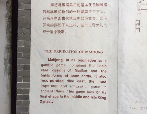 据考证这里的陈家就是麻将的发明者,现在的陈列馆是在陈家老宅设立的,整个院落古色古香,通过碑刻等形式告诉我们麻将的发展历程。
