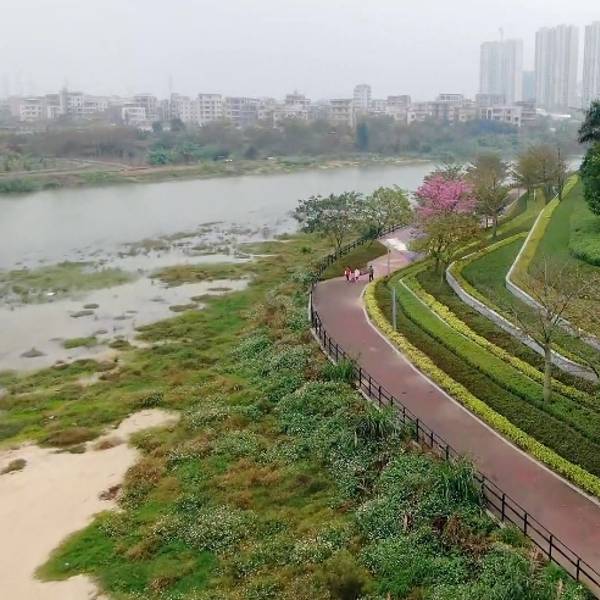 江滨公园依江而建,具有独特的江景风光。公园全长约3公里,沿江西岸打造了亲水平台、步行道、绿化带等设施。在亲水平台,能近距离观赏鉴江风光,感受江水的流动。步行道两旁种植了各种花卉和树木,四季景色各异。公园内还设有健身设施和儿童游乐区,是市民休闲锻炼、亲近自然的理想之地。