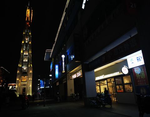 一条步行街,两边有很多商铺,晚上很热闹。来这里吃饭,走几步就有一个广场舞团队,感觉附近小区的居民夜生活很丰富。晚上过来一片热闹,步行街上的的一个塔也亮着灯,很好看!