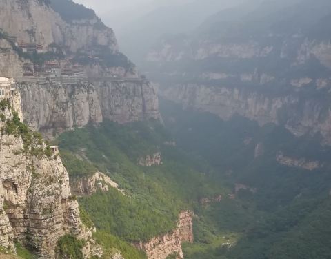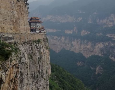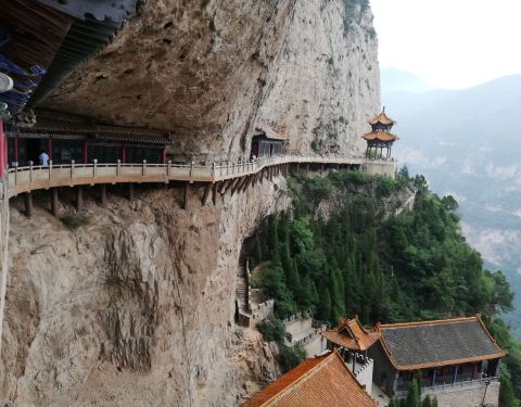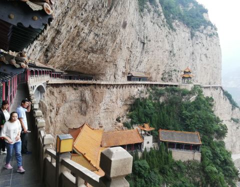 是绵山风景区主要景点之一。建设的寺观沿着绝壁兴建,并在绝壁高处兴修了空中栈道,距地面约一百多米 2018-11-23 10:44