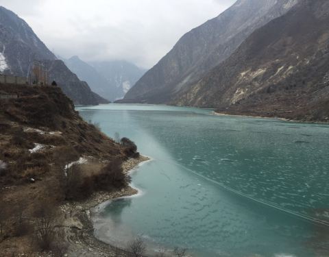 从成都坐大巴去九寨沟,一路上有很长的一段都在岷江边上,江边的车路一路上都不那么的安全,主要是弯道很多,加上冬天雪路,总能路上车各种事故,这条路是事故多发段。山崖上还能看到古茶马古道,真是厉害的蜀地人。