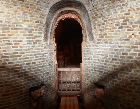 明代葫芦窑遗址相当于两个馒头窑的组合,长形的样子,也便于一窑烧制出需要不同温度的瓷器。在葫芦窑的后面还有几个小窑,这几个窑每个月都有一个要复烧。