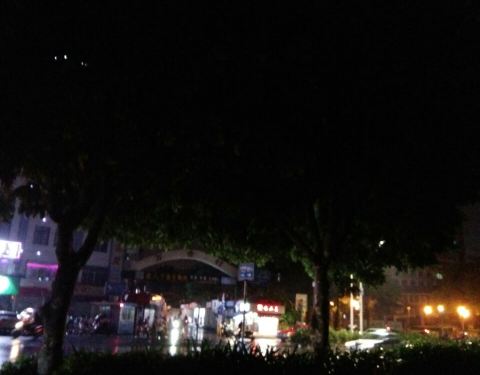 这是深夜的明秀广场,一场大雨过后,停了我才返家,在回来的路上,旁边的万秀村小吃街还很热闹,如果不是这场雨,明秀广场,不管白天还是晚上,人都挺多的。尤其是晚上,很多人跳舞,碰到节日,喷泉开,也很好看。