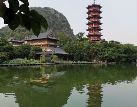 木龙湖景区,有新修的木塔,但其实漓江边的木龙洞石塔才是真正的文物。石塔本身趣味性不大,虽然文物价值很高。不过沿江散步路经此处看看风景还是不错的。