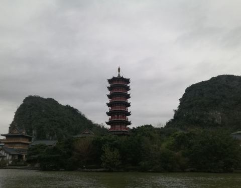 这里的景色非常不错,木龙塔坐落于叠彩景区内,高耸塔影在这里非常突出,从叠彩山上看去,雄傲周边,漓江左右的风光都是它的陪衬。