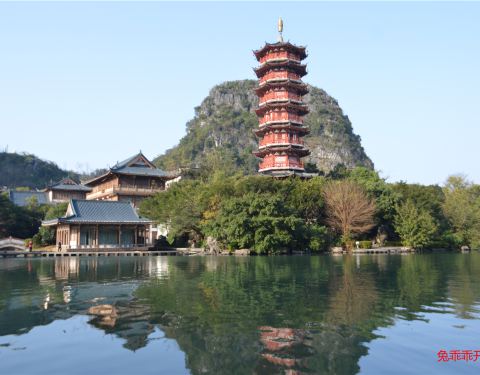是木龙湖的地标,七层高塔矗立于湖边的仿古建筑群中央,蔚为壮观,夜景更璀璨是木龙湖的地标,七层高塔矗立于湖边的仿古建筑群中央,蔚为壮观,夜景更璀璨。而要区分开的是,这座塔乃新建的旅游景点,在叠彩山景区内,还有一座木龙洞石塔,那个才算是古迹。