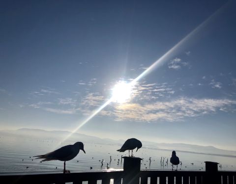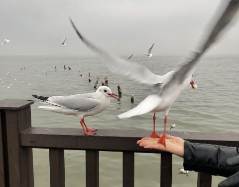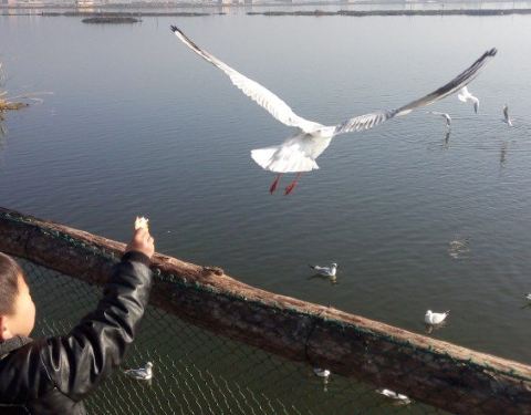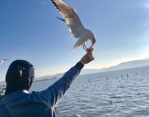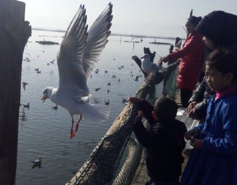 这是我的家乡,富有民族特色的一个回族小镇,小时候的记忆中海边(我们都这样称呼杞麓湖边)只有少数的白鹭,近年来随着生态环境不断改善,每年11月中旬开始,来自西伯利亚的这些可爱的小精灵就到这里安营扎寨了,纳古人都把它们当成远方的客人,每天天才蒙蒙亮,人们就相继买着馒头面包去给这些小精灵喂食,在这里,你看到的都是人鸥和谐的美画面,前几年村民搭建的小木桥现在已经被坚固了新型材料小桥替代了,路边摆摊卖水果,特色小吃、烧烤等等的有很多,物美价廉,可以一边吃着美食一边观赏海鸥,真的值得来逛逛