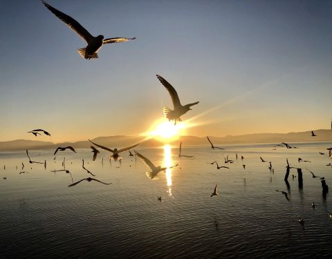 这是我的家乡,富有民族特色的一个回族小镇,小时候的记忆中海边(我们都这样称呼杞麓湖边)只有少数的白鹭,近年来随着生态环境不断改善,每年11月中旬开始,来自西伯利亚的这些可爱的小精灵就到这里安营扎寨了...