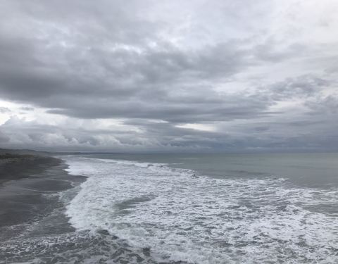 我们到格雷茅茨的时候已经是快下午,格雷茅茨很小,千层饼又需要四十分钟的路程。因此,我们选择了这个离市区五公里以内的地方。motel的热心前台告诉我们如果运气好的话,能够看到海豚。没有看到了海豚,却看到了冲浪的学者。这是一个很粗狂的海边,没有太多游客,反倒适合来感受自己的内心,很喜欢,岸边的白色鹅暖石很美,捡了很多回家。可停车