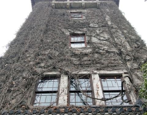 ...南京大学图书馆旁边,近民国建筑南京大学校史博物馆,红色流线型选型配上图书馆满墙的爬山虎好看着泥
