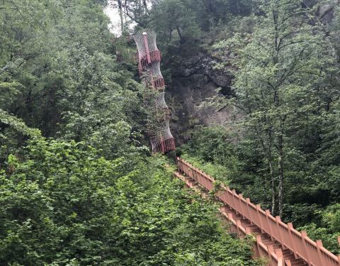 ...是韦小宝藏宝的地方,山顶上望去一片碧绿的麦田,沿栈道蜿蜒曲折的下到山底却又是一番别有洞天的景色