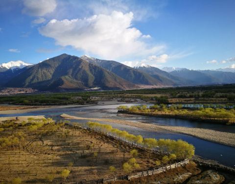 雅鲁藏布江与尼洋河交汇处,跨越林芝、米林两县,长达数十公里,形成了壮观的雅尼国家湿地公园。 江河交汇,形成了比较宽阔的地带,江水也较为平缓, 水漫两岸,形成众多的浅滩湿地,湿地流域地形复杂,两侧雪山...