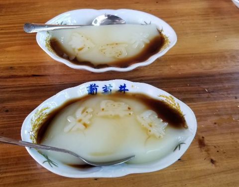 从僰王山出来,专门跑到双河葡萄井凉糕来打卡,在成都,一到夏天,到处都是打死葡萄井的招牌卖凉糕的,现在的葡萄井凉糕是宜宾的非物质文化遗产,用葡萄井井水做出的凉糕非常软糯细华,加上浓厚的红糖,味道非常的不错。