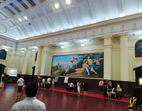 位于馆陶路22号的青岛取引所旧址,这还是第一次进去。这边是免门票费的,里面还蛮大的,还有很多很多的鸽子,特别好看。进去后里面有很多的油画,这些画既可以欣赏也可以买卖,还有很多古玩在里面,需要静下心来慢慢欣赏。