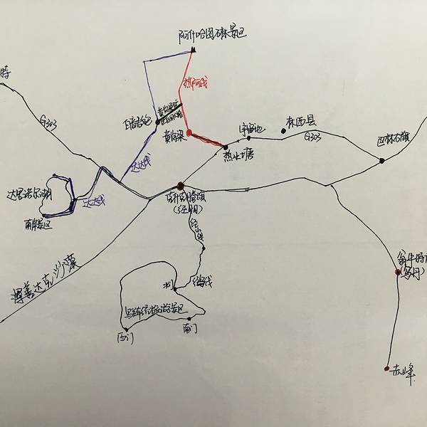 下面附上这次自驾路线的线路图(纯手绘),仅供参考线路-- 盘锦 —京哈高速—丹锡高速—G303—热水塘—热阿线—黄岗梁—黄岗梁矿区自用公路—达达线— 达里诺尔湖 —达达线、经 克什克腾旗 、经山线、经乌线— 乌...