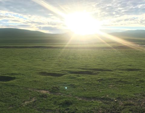 下面附上这次自驾路线的线路图(纯手绘),仅供参考线路-- 盘锦 —京哈高速—丹锡高速—G303—热水塘—热阿线—黄岗梁—黄岗梁矿区自用公路—达达线— 达里诺尔湖 —达达线、经 克什克腾旗 、经山线、经乌线— 乌兰布统草原 清晨6点,装好车,迎着初升的太阳出发啦!一路沿丹锡高速---国道303北上,途径 巴林右旗 、 林西 县、宇宙地镇(名字很霸气呀,地方也很霸气,从镇子过路要收15元的过路费,小伙伴们要有心理准备,不差钱儿的自动忽略),一路走走停停,将近10个小时的车程,到达了第一站“ 中国 温泉之乡”——热水塘,位于 内蒙古 克什克腾旗 30公里处,集通铁路经过此地并设点。度娘说热水塘温泉为地热温泉,水中含氧、氟、硅、镭等47种化学微量元素,水温在83摄氏度左右,自然冷却后沐浴对皮肤极好,康熙爷和九世班禅都曾在此沐浴。所以我选择此地作为第一站,为长途跋涉洗去尘土和疲惫,养精蓄锐准备享受余下的旅程。小镇里几乎都是宾馆和饭店,我们选择了一家叫“王府”的家庭宾馆,性价比不错,干净、平价,美美的泡一晚地下温泉,消除疲劳,皮肤也变得滑滑滴~