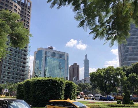 台北市区路过的街景 和打望到的101 特别喜欢这条三股车道的路 中间走直行车和公车 车道中间都有参天大树的宽阔林荫路 行人在林荫路上等公车 很特别很漂亮 出租车师傅说这是台北最美的仁爱路 还给我们指了路过的...