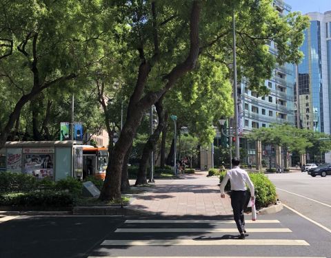 台北市区路过的街景 和打望到的101 特别喜欢这条三股车道的路 中间走直行车和公车 车道中间都有参天大树的宽阔林荫路 行人在林荫路上等公车 很特别很漂亮 出租车师傅说这是台北最美的仁爱路 还给我们指了路过的帝宝小区 据说是十几年前台北最贵的楼盘 小s就住里面