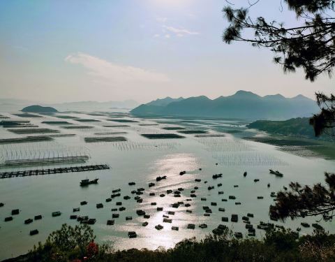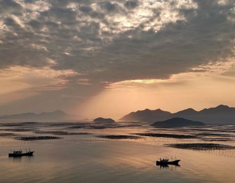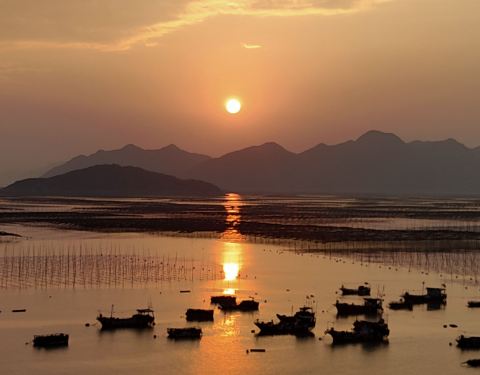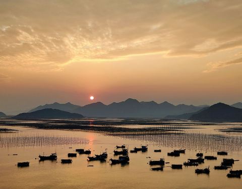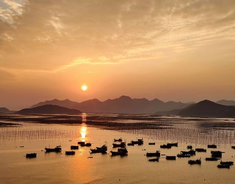 三沙镇是霞浦观赏日落的一个景点,游客可以选择在桥上纵览全局,也可以下到沙滩,观赏波光粼粼的海景,海面上还停泊着很多渔船。