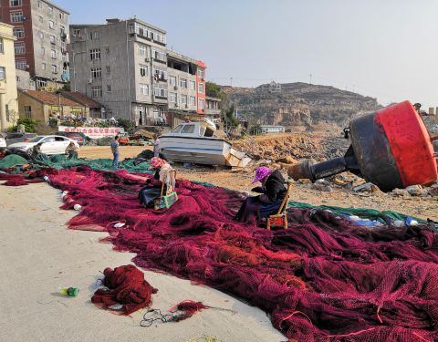 渔民在岸边补网,大小船只拥在港口,远处的五彩楼房错落有致……是不是有一种置身地中海五渔村的错觉?不过无论如何,霞浦的美独一无二。