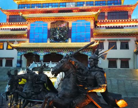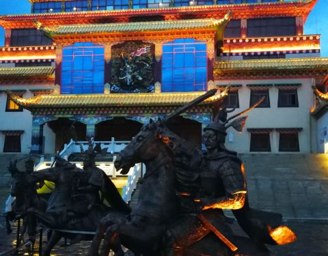 较之重庆,这里可能更像一座山,山上的城,城里的山,山和城很难分清楚。来这里可真不容易,无论从兰州还是成都出发,不太明白为什么要做成粉红色,但抬眼望去却并不庸俗肤浅。