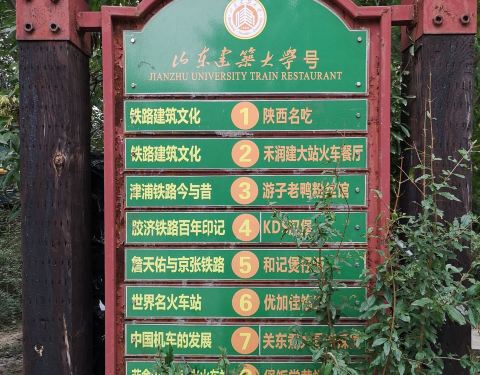 漫步济南 大学里的火车餐厅 我从未听说过的山东建筑大学,给了我一个意外的惊喜。一个站台、9节车厢、口味各不相同的美食,10元吃饱15元吃好………美女帅哥音乐鲜花,嗯,店家甚至还贴心地准备了体重秤,太完美了。 于是,我看到一个老师在各车厢间熟练地穿行吆喝,至于他带着的那群人,明显是其他学校来参观的老师,所有人脸上震惊呆滞的表情已经出卖了他们。 于是,我又听到那熟悉的抱怨“别挤别挤,咦,我明明是要下车的呀,怎么又被挤上来了”?[抓狂] 吃完美食,回过头来再说说这段神奇的经历。从博物馆坐上公交车,我就有点犯晕,居然车身左右各有2个门,设计的像地铁一样,只不过另一边目前是用栏杆围着,无法上下客。 接下来,公交车在马路上跑了10多站后,一转弯就开进了学校,在校园里穿行停靠。然后不久我就看见了火车餐厅,糊里糊涂下了车。 话说回来,这才是大学该有的样子啊,搞封闭教学外人免进的那些个学校真的应该好好学学。 然后,又在学校里遇见了一座老别墅,原先在距此地28公里的地方,结果300多吨的小楼硬是被建大给原封不动转移了过来,实在是太牛! 从站牌名称看,这里属于建大的新校区,湖光山色鸟语花香,又在从机场入城的必经之路上,实在是外地客来济南的必游之地。