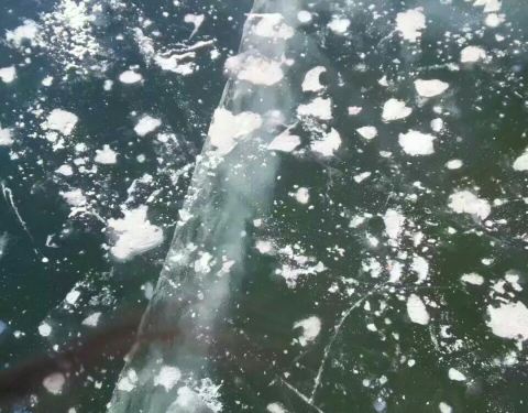 早上有很多人在玩溜冰刀,阳光折射在冰面上很好看,那边还有一个冰房子,地有点滑,从中间走来走起感觉不错