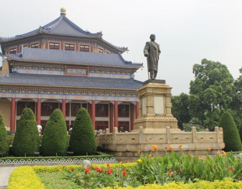 从越秀公园出来,正好看到的就是孙中山纪念馆,原本想去里面看看的,但是那天正好有学生在里面进行演出,游客就不能进去了,外观看上去还是蛮壮观的,在纪念馆前,矗立这孙中山先生的塑像,很庄严,仅仅是拍点照片就走了。