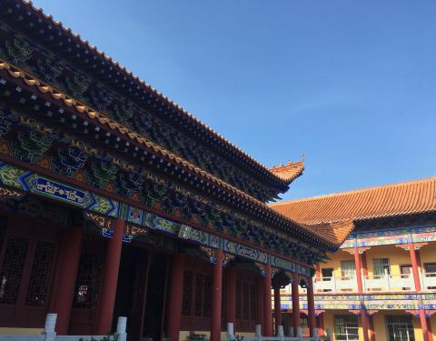 园区卫生不错就是狗有点多,因为怕狗就离得远远的,园区走300米左右有座庙,装饰的挺细致,只周围...