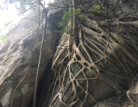 去的时候刚好下了雨放晴的时候,开车沿山路而上,曲折蜿蜒,很有驾驶乐趣。去到北峰茶厂那条路途中,忽见路边怪石嶙峋,流水潺潺,树木葱郁,美不胜收!