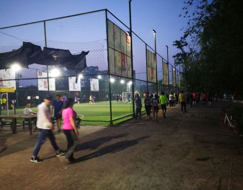 ...间为湖泊,面积很大,有人钓鱼有人唱歌,但是偶尔有遛狗人士不栓绳子,带孩子逛公园一定注意孩子安全