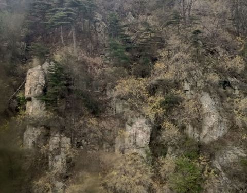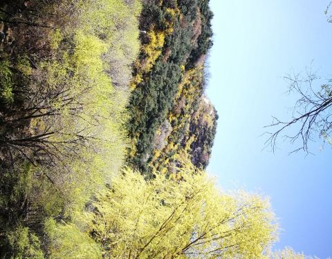 桃花源方向人比较少,但风景却很美,满山的连翘(不是迎春花)星星点缀,美极了。桃花源山脚下但清明去时桃花处于花苞状态,更地势更低的桃花峪桃花盛开