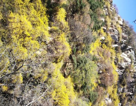 桃花源方向人比较少,但风景却很美,满山的连翘(不是迎春花)星星点缀,美极了桃花源方向人比较少,但风景却很美,满山的连翘(不是迎春花)星星点缀,美极了。桃花源山脚下但清明去时桃花处于花苞状态,更地势更低的桃花峪桃花盛开