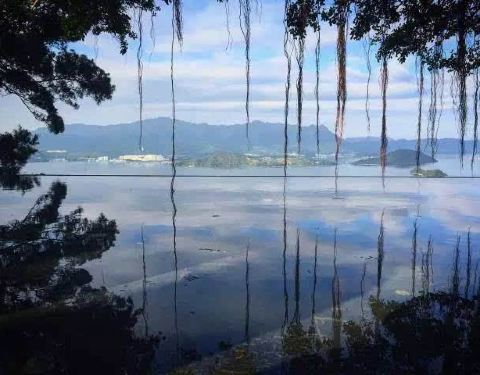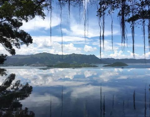 天人合一是港中大里著名的网红打卡景点天人合一是港中大里著名的网红打卡景点。跟摄影技术无关,这个地方按下快门就是这种效果。位于香港中文大学内的景观,位于山顶,有一汪被榕树笼罩的池塘,池水里倒映着天光和树影,与远方的海连接成一片。