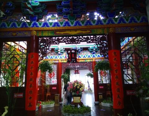 万字楼在外面看不出什么特殊的地方,就是仿古建筑一样的,但是走进去,就感觉不太一样,里面被打扮的很漂亮,花团锦簇的一片。。