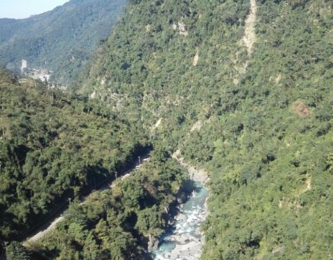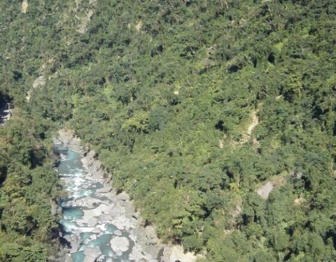 ...山峦、溪谷景色,缆车从乌来瀑布上空经过,是观赏瀑布的最好角度,缆车上绘有当地传统的涂鸦,很有趣