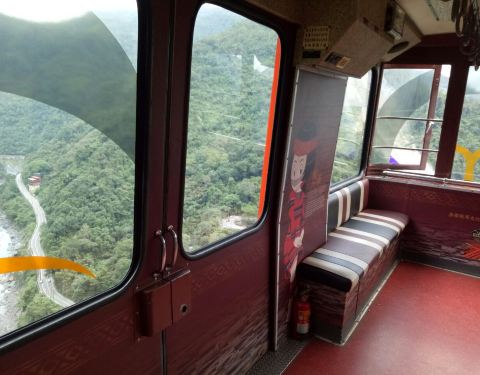 缆车不错,才220台币,好便宜!正好从乌来瀑布上经过,缆车内还有涂鸦和原著民的图案,不算很长,但服务很好。当天只有我们两人,包车哦,但服务人员也很热情!不厌其烦的介绍我们注意事项和山顶的乐园内容。