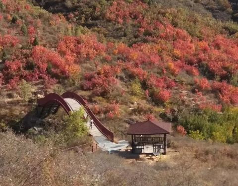 很小众的地方,但是个人感觉景色比香山好,起码真的有大片红叶。登山步道也不算累,体力不好的人也是可以上去的。山下还有采摘苹果的地方。路程有点远,跟着导航能找到。