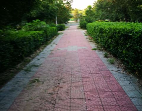 公园非常小,也不太干净,遍地狗屎。有一些健身器材,一个篮球场